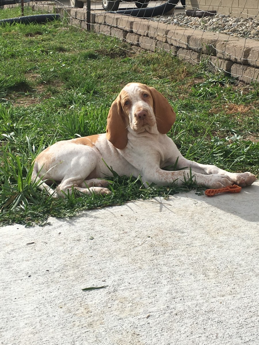 Bracco Dynasty is a small, in-home breeder with a focus on premium care and socialization of all our Bracco Italiano dogs and puppies. Bracco Dynasty has ONLY had five litters to date (05/24) because we focus on Quality rather than Quantity. In the past we have had several Bracci who have not passed all their health testing, so we did not breed them, we only breed for excellent health. Vet reference and health testing available. We run a very clean kennel and have worked hard to deserve our reputation as a kind, friendly, and trustworthy Bracco breeder. Please visit our reference page. We produce quality pets and bird dog puppies. We are here to answer any questions you may have about the Italian Bracco Dog.